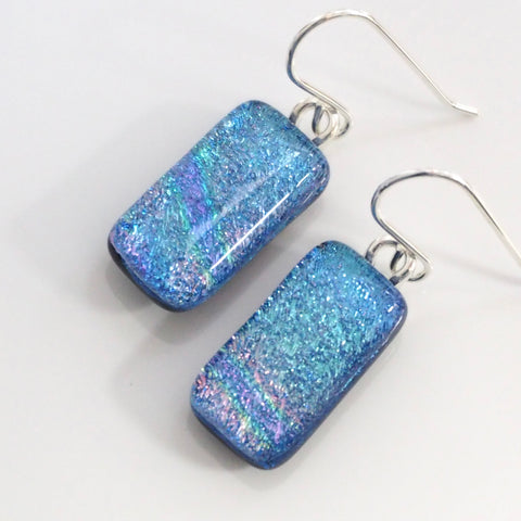 Pale blue fused glass earrings. These earrings are pretty pale blue with hints of pink and lavender.